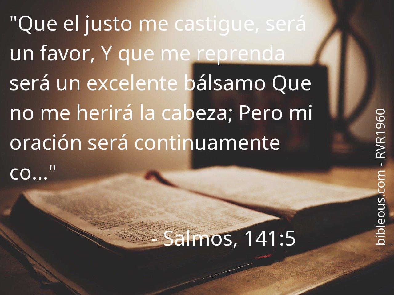 El versículo Salmos, 141:5 del capítulo 141 que nos presenta la versión 'Biblia Reina Valera 1960' de La Biblia resulta muy interesante para realizar una lectura reflexiva y tratar de profundizar en la sabiduría de sus palabras. ¿Qué quiso decirnos Dios con el versículo Salmos, 141:5? El capítulo 141 consta de 10 versículos, que pueden ayudar a contextualizar y ofrecer mejores referencias para comprender lo que el Padre quiere decirnos en el versículo Salmos, 141:5.