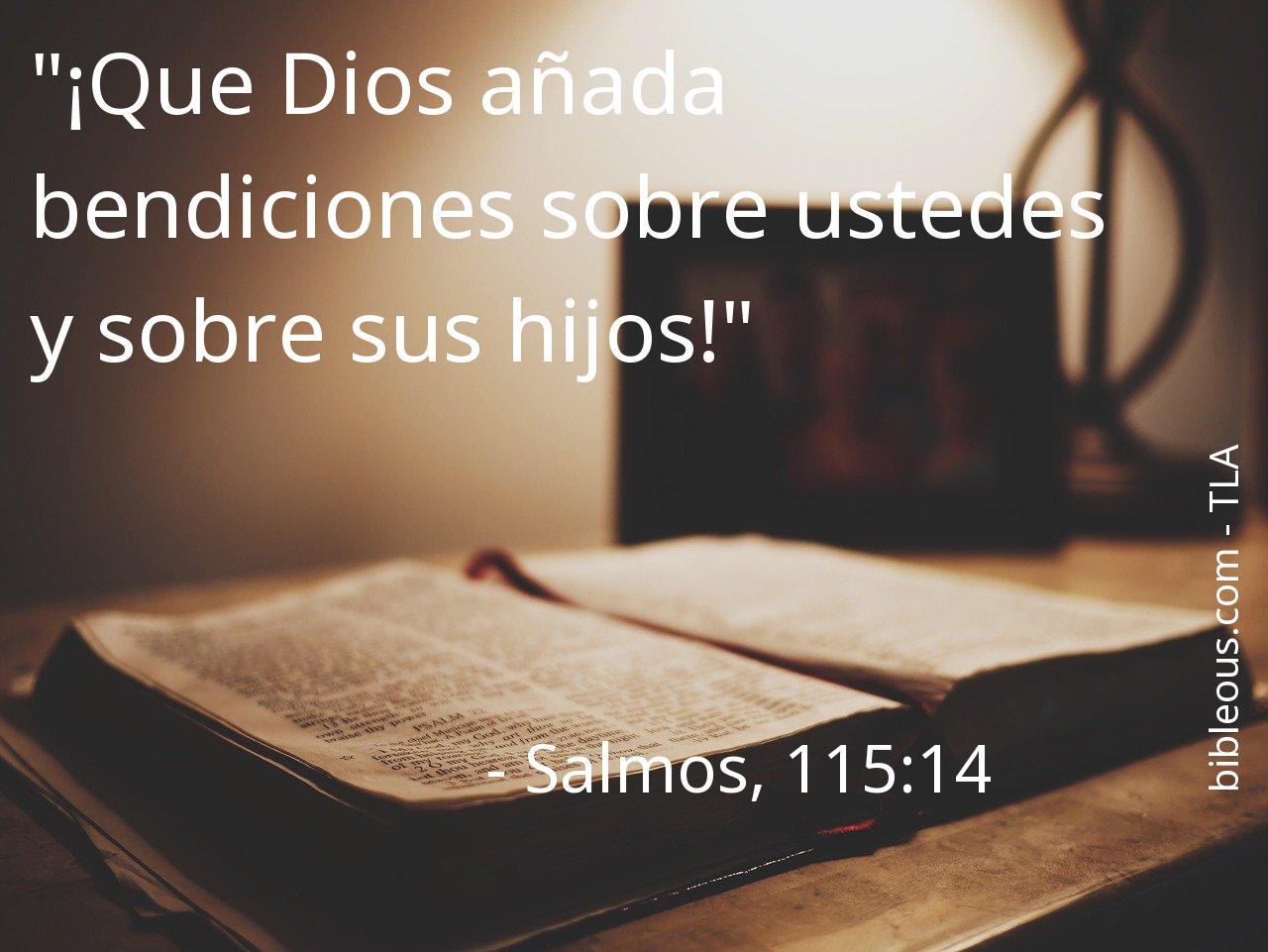 A pesar de todo, ninguna palabra escrita en la Biblia está de más. Ninguna palabra falta. La palabra del Señor se constata en las Sagradas Escrituras, ya sea en la versión 'Traducción en Lenguaje Actual' o en cualquier otra de las versiones de la Biblia. Por eso, reflexionar sobre el versículo Salmos, 115:14 del capítulo 115 del libro Salmos, nos ayuda a ser mejores cristianos y a acercarnos más a Dios. Es bueno recurrir al versículo Salmos, 115:14 en todas aquellas ocasiones en que nos pueda servir de guía para saber cómo actuar o para traer paz a nuestros corazones.