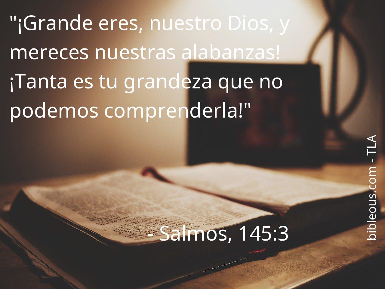 A pesar de todo, ninguna palabra escrita en la Biblia está de más. Ninguna palabra falta. La palabra del Señor se constata en las Sagradas Escrituras, ya sea en la versión 'Traducción en Lenguaje Actual' o en cualquier otra de las versiones de la Biblia. Por eso, reflexionar sobre el versículo Salmos, 145:3 del capítulo 145 del libro Salmos, nos ayuda a ser mejores cristianos y a acercarnos más a Dios. Es bueno recurrir al versículo Salmos, 145:3 en todas aquellas ocasiones en que nos pueda servir de guía para saber cómo actuar o para traer paz a nuestros corazones.
