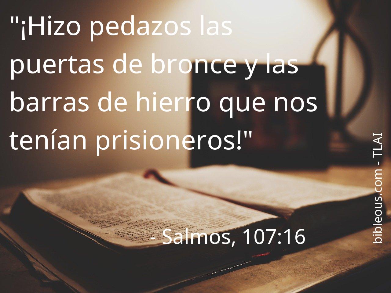 El versículo Salmos, 107:16 del capítulo 107 que nos presenta la versión 'Traducción en Lenguaje Actual Interconfesional' de La Biblia resulta muy interesante para realizar una lectura reflexiva y tratar de profundizar en la sabiduría de sus palabras. ¿Qué quiso decirnos Dios con el versículo Salmos, 107:16? El capítulo 107 consta de 43 versículos, que pueden ayudar a contextualizar y ofrecer mejores referencias para comprender lo que el Padre quiere decirnos en el versículo Salmos, 107:16.