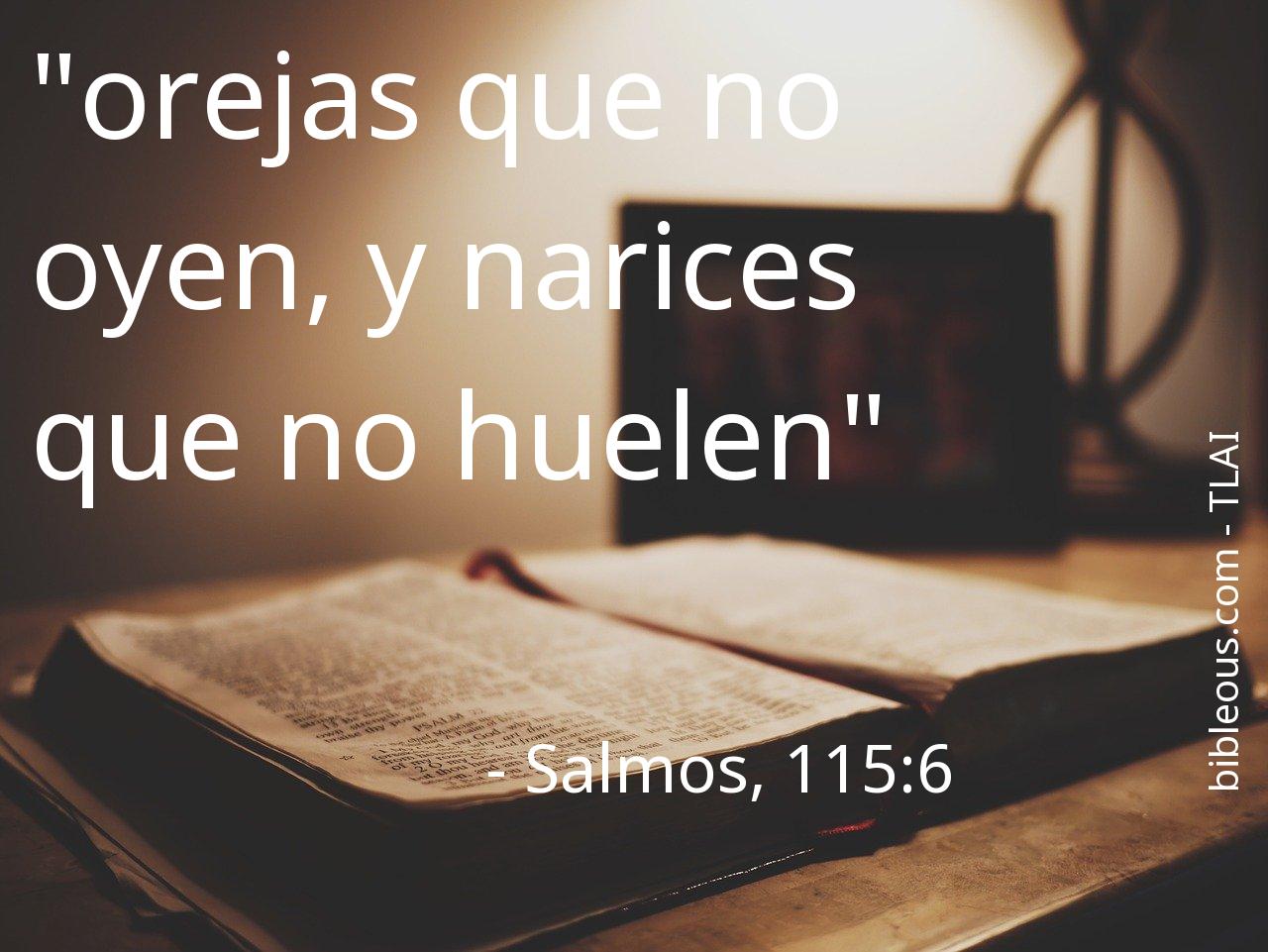 El versículo Salmos, 115:6 del capítulo 115 que nos presenta la versión 'Traducción en Lenguaje Actual Interconfesional' de La Biblia resulta muy interesante para realizar una lectura reflexiva y tratar de profundizar en la sabiduría de sus palabras. ¿Qué quiso decirnos Dios con el versículo Salmos, 115:6? El capítulo 115 consta de 18 versículos, que pueden ayudar a contextualizar y ofrecer mejores referencias para comprender lo que el Padre quiere decirnos en el versículo Salmos, 115:6.